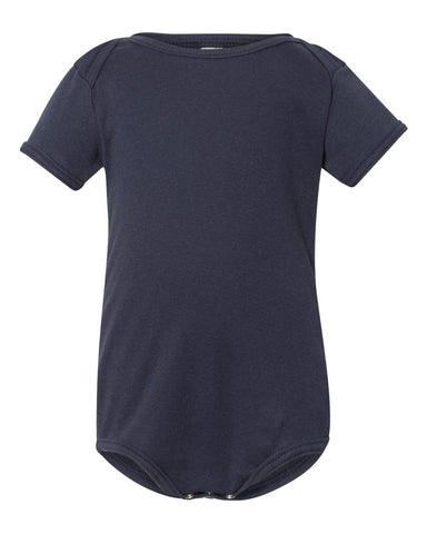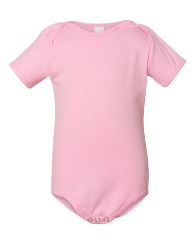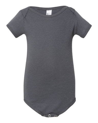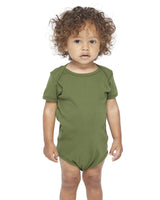 The American Apparel® Infant Baby Rib Bodysuit is 5.9 Oz. and made of 100% combed ringspun cotton. Features 3/8" self fabric trim at neckline, sleeves and leg openings, metallic closure snaps, and double satin razor label. Complies with Prop 65.