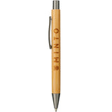 The Bamboo Quick-Dry Gel Ballpoint features a 100% bamboo barrel with gunmetal accents, creating a sophisticated contemporary look. It comes equipped with an ultra-smooth, rapid-drying, semi-gel black ink cartridge so that you can start writing immediately. The pen operates using a simple click-action mechanism and features a 1mm ballpoint tip with an impressive writing length of 800m. 0.43" W x 5.43" H