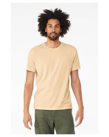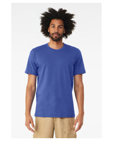 4.2 oz., 52% airlume combed and ringspun cotton, 48% polyester, 32 singles; Prism Colors: 99% airlume combed and ring-spun cotton, 1% polyester; Athletic Heather and Black Heather are 90% airlume combed and ring-spun cotton, 10% polyester; Retail fit; Unisex sizing; Shoulder taping; Sideseamed; Tear away label; Pre-shrunk; BELLA+CANVAS uses sustainable manufacturing processes with Blue Sign certified dyes, efficient dye houses that adhere to the state of California?s EPA regulations around wast
