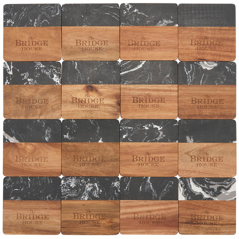 Black Marble and Wood Coaster Set