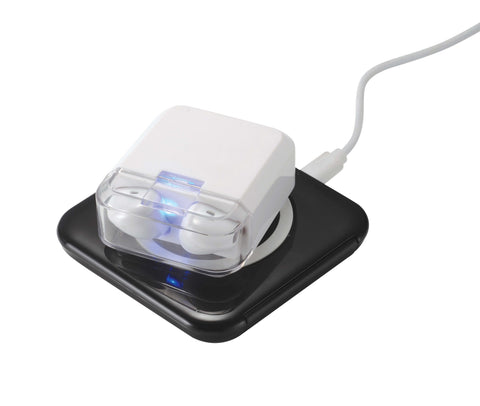 The Braavos True Wireless Auto Pair Earbuds feature Bluetooth 5.0, Voice Assistant Activation (Siri/Hey Google), and built-in music controls for hands-free operation. Once the earbuds are removed from the case, they`ll automatically power on and sync with the Auto-Power On and Auto-Pairing features! The included case doubles as a powerbank for your earbuds and can be charged via a wireless charging pad or by using the provided Micro USB Cable. Once the case's 500mAh battery is fully charged, it will power the earbuds 5x from 0% to 100%. It provides over 4hrs of playback time at max volume on a single charge and reaches full power in 1.5 hours (for the earbuds) or two hours (for the case). The ergonomic design of the earbuds keeps them in place on the go. 1" D x 2.25" W x 2.5" H