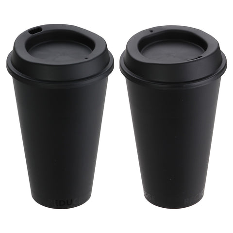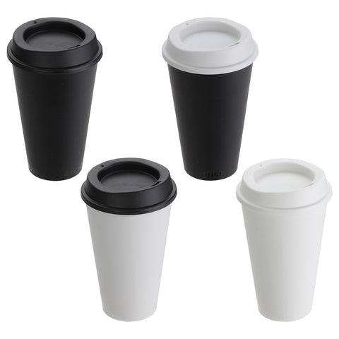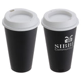 Enjoy your beverages while on the go with our Café 17 oz Sustainable To-Go Cup, made from 100% recycled post-consumer polypropylene. The reusable cup has a lid that can double as a coaster and 12 oz and 16 oz markings on cup. The Café cup is top-shelf dishwasher safe and is microwaveable, but lid needs to be removed first. FDA certified. Must be ordered in exact case quantities. Tariffs do not apply. Complies with FDA, Prop 65. 6.125" H x 3.75" Diameter