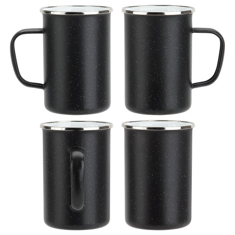 The Caldron 22 Oz Enamel-Lined Iron Coffee Mug features iron construction with a speckled enamel finish. Large capacity perfect for extended campfire or other gatherings. Hand wash only. FDA certified. Complies with FDA, Prop 65. 5" H x 3.375" Diameter