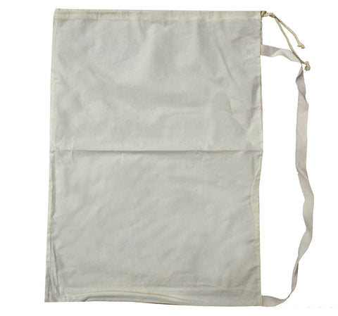 Made from biodegradable 4.5 Oz. cotton. Features webbed cotton shoulder strap and cotton drawstring closure with locking mechanism. 20" W x 28" H