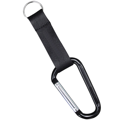 Heavy-duty carabiner key chain with removable key ring & strap. Not to be used for climbing. Bulk packed when shipped. Complies with Prop 65. 1.75" W x 6" H