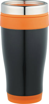 The Bullet Carmel Travel Tumbler 16oz features double-wall construction with an insulated design to help keep your favorite beverages hot or cold in any environment. It comes with a stainless steel twist-on lid that has a slide-lock drink opening for easy enjoyment on your next flight or commute. This 16oz travel tumbler is hand-wash only. 3.38" D x 3.38" W x 7.00" H