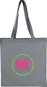 The Carolina 4oz Cotton Canvas Tote features a slim, reusable design that's a great alternative to plastic bags and is perfect for conventions and tradeshows. The open main compartment holds all of your essentials. The double 29 inch reinforced handles make this tote easy to carry. 15" W x 16.5" H