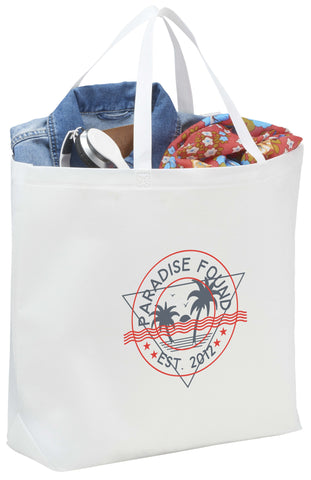 The Challenger Heat-Seal Oversized Shopper Tote features an open main compartment and heat-sealed construction. This tote is available in multiple colors and makes a perfect, reusable alternative to plastic bags for shopping. Polypropylene is recyclable with #5 plastics please check with your local municipalities for specific rules and regulations. 6" D x 22" W x 17" H