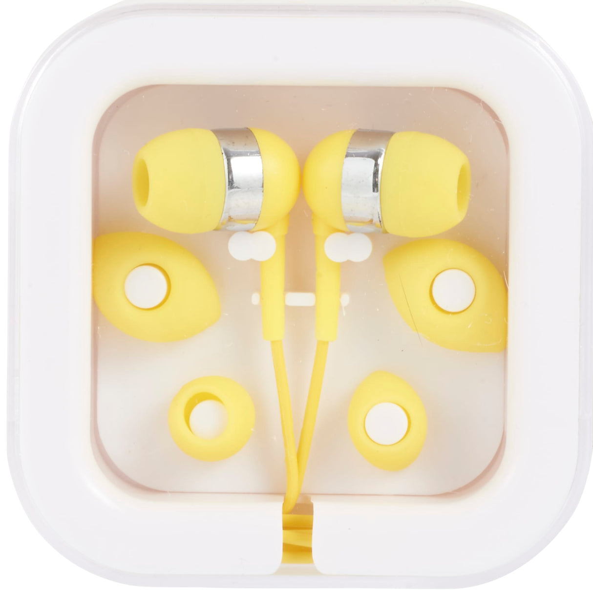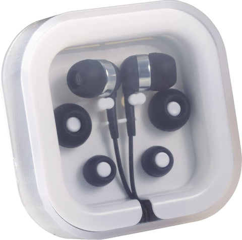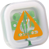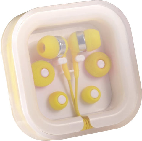 The Color Pop Earbuds can be used with any standard audio device and feature lightweight plastic construction to provide comfortable all-day wear. This set includes three interchangeable soft rubber earbud covers, a plastic case with cable storage, a standard 3.5mm audio jack, and a 38" earbud cable. 2.75" D x 2.75" W x 0.75" H