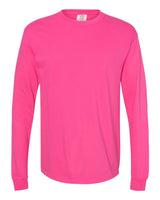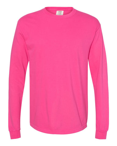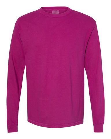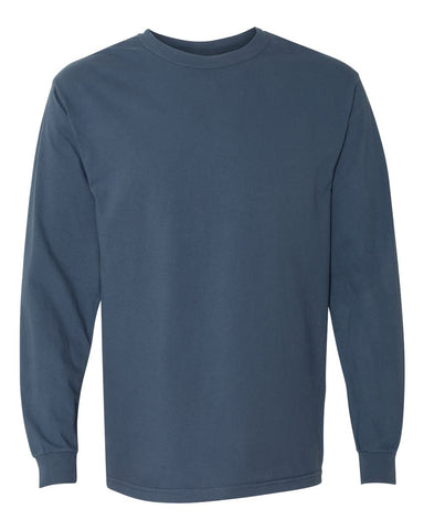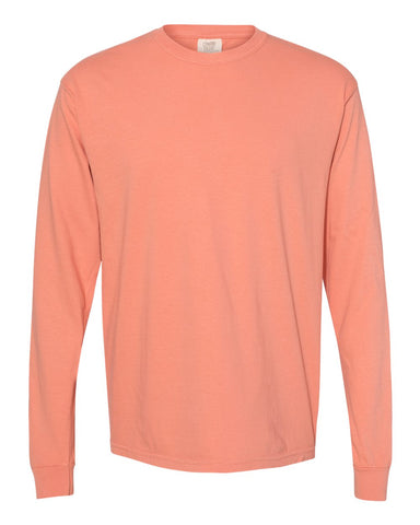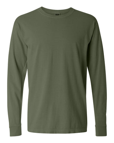 Available in an array of earthy colors, these long-sleeved tees exude a laid back style. Made of 6.1 Oz., pre-shrunk 100% ring spun cotton. Features ribbed collar with set-in sleeves, shoulder to shoulder taping, and double-needle stitched neck, sleeves, armholes, and bottom hem. Comfort Colors are True Garment Dyed. Complies with Prop 65.