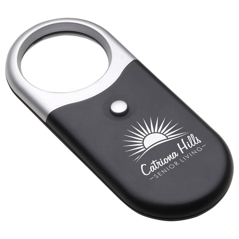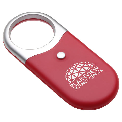 Bright LED light, 3X magnification power, Powered by 4 replaceable button batteries, inserted. Complies with Prop 65. 4.75" L x 0.6875" W x 2" H