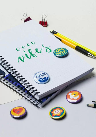 - Round shape: These custom pin buttons come in a round shape and in four sizes - 1", 1.25", 2.25", and 3.5"