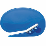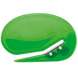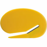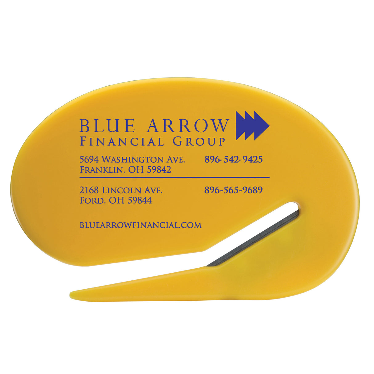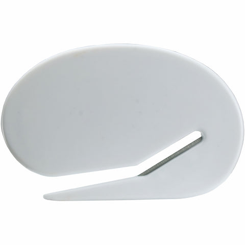 Oval shaped cutter. It slices and dices envelopes, making the everyday task of mail sorting a breeze! Complies with CPSIA, Prop 65. 3" H x 2" W