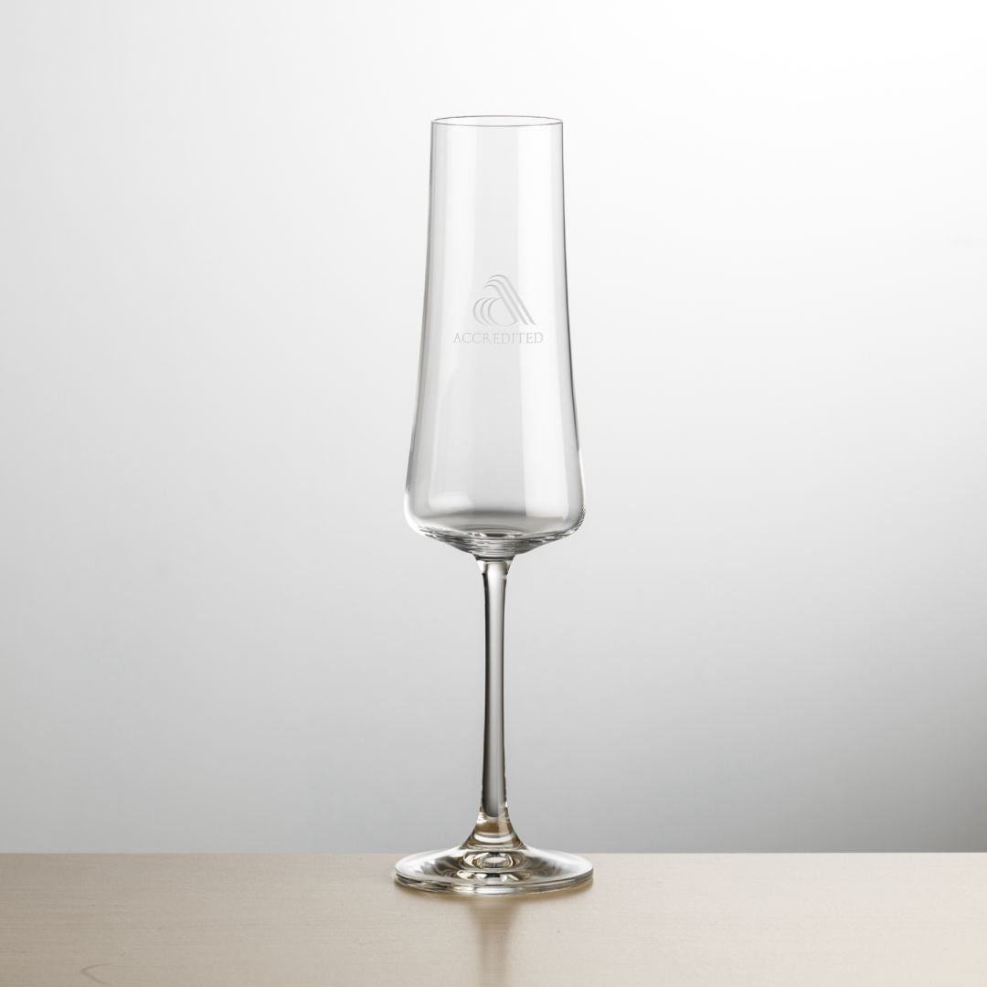 The elegant stem and flat narrow bowl of the Dakota Crystalline Flute glass is perfect for sparkling wine or champagne. A uniquely shaped glass to toast and celebrate a momentous occasion.
