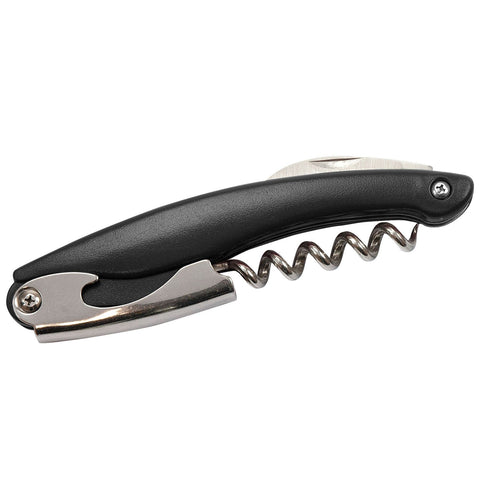 Deluxe Corkscrew with small knife and bottle rest. Complies with CPSIA, FDA, Prop 65. 4 1/2" W x 1" H
