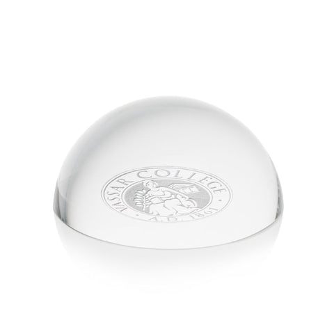 This optical crystal Dome paperweight, 3½” in diameter, provides a dramatic magnification of artwork etched on the central underside area.
