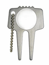 Stainless Steel Domed divot tool with chain. These affordable golf gifts make perfect giveaways for trade shows as well as golf outings and tournaments. Complies with CPSIA, Prop 65. 2 1/4" H x 1 1/2" W