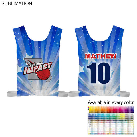 Domestic Made Athletic, Breathable Mesh Adult Sports Pinnie, Sublimated Front and Back