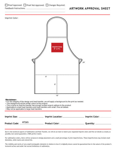Domestic made Shorter length Twill Bib Apron, 19x24, 2 Pockets, Heat Transfer Logo