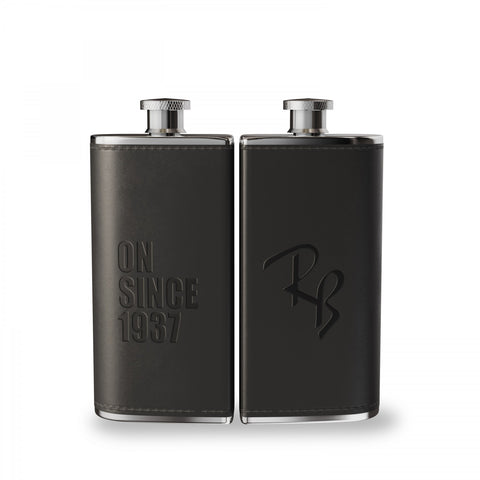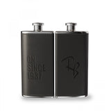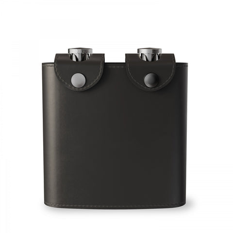 Cant decide what youre in the mood for? Opt for this dual flask to double the fun! This pair of 3 oz flasks is perfect for mixes, mine and yours, or a combination of your favorites. Made of SS304 quality stainless steel and wrapped in classic black Donald vinyl, these flasks easily tuck away in their convenient carry case designed to hold both securely in place. Comes in a black tuck-in box. 4.0625" L x 4.5000" W x 1.5000" H
