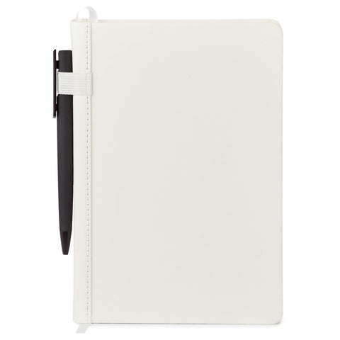 Combo includes ST4360 vinyl journal with 192 ivory lined, perforated pages non-refillable and a matching G1254 Donald clip-action ballpoint plastic pen. Journal inner page dimension is 5 7/16" x 8 1/8" ComponentsG1254','ST4360. 6.3750" L x 8.2500" W x 0.0000" H