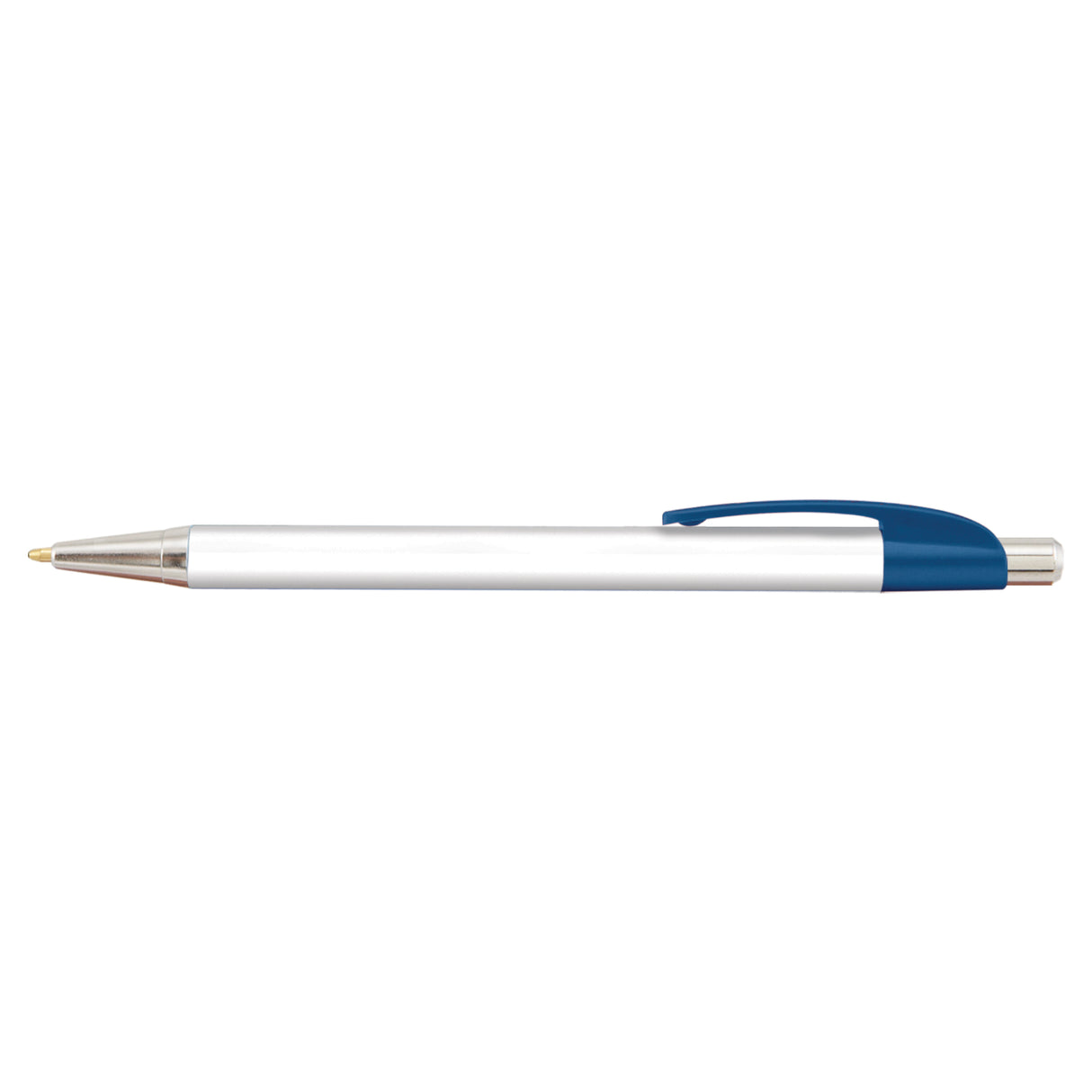 Brilliant metallic clip colors and bright chrome trim bring a great sense of style to this sleek, slim barrel pen. It features our SimpliColor (TM) printing process, yielding a huge imprint area with virtually unlimited colors. It features our gel-like Eversmooth (R) hybrid ink for an extraordinary writing experience in black or blue ink. Complies with Prop 65. 5.88" L x 0.37" W