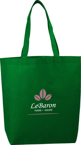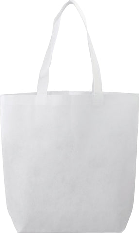 The Eros Non-Woven Shopper Tote provides an easy way to transport your daily essentials. It features a spacious open main compartment and sturdy 20" double handles that make the bag comfortable and convenient to carry. With lightweight construction using recyclable polypropylene materials, this non-woven tote is a perfect alternative to single-use plastic bags. 4.25" D x 15" W x 13.5" H