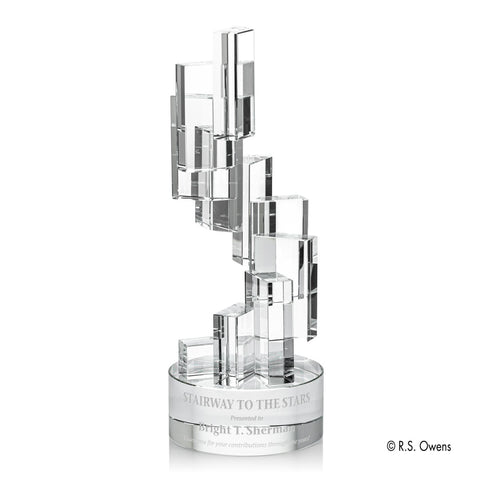 Honor growth or the attainment of a milestone with this stairway of optical crystal aspiration, spiraling out from a thick optical crystal base.
