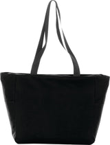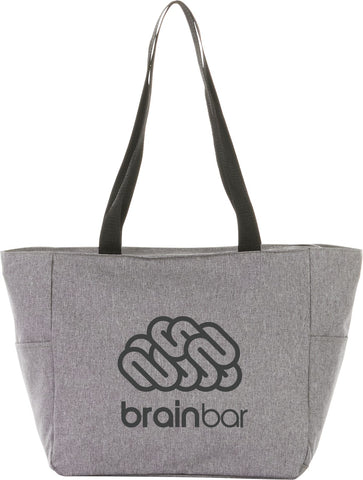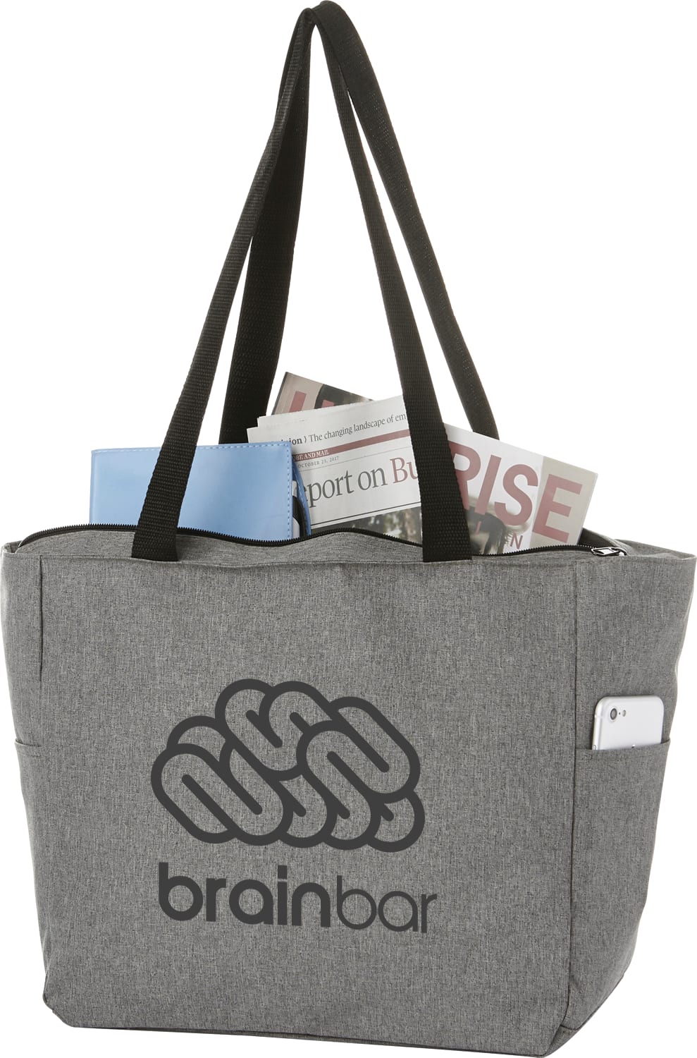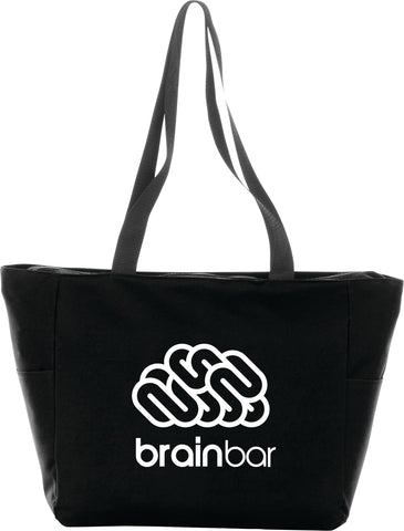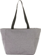 The Essential Zip Convention Tote has a zippered main compartment, dual side pockets and 12 inch drop handles. Disclaimer: There may be minor variations in color of the actual product due to the nature of the fabric dyes, weaves and printing. Complies with Prop 65. 6.50" D x 13.50" W x 12.50" H