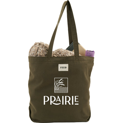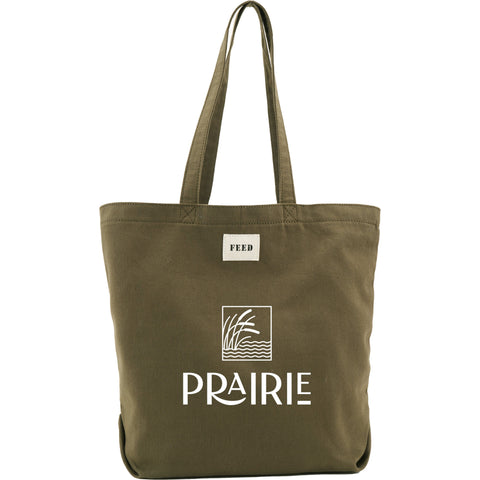 The FEED Organic Cotton Shopper Tote is a classic style tote with a meaningful impact - every purchase of this tote helps provide 5 school meals to kids around the world. This tote features an open main compartment for easy access and durable handles with a 10.5'' handle drop height — all crafted using 8oz. 100% GOTS Certified Organic cotton. Inside the tote you'll find the iconic FEED giveback message screen-printed on the bag. 5.5" D x 17.25" W x 14" H