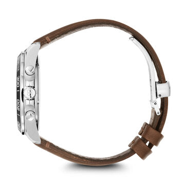 Time Keeper, Hour Marker, Minute Hand, Leather Strap, Fixed Bezel, Sunray Brushed Dial, Chronograph, Date Calendar, Tachymeter Scale, Scratch Resistant, Water Resistant To 100 M, Stainless Steel Case