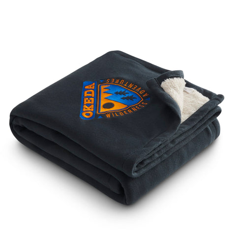 The Fleece-Sherpa Blanket features polar fleece on one side and soft sherpa on the other. Snuggling up in this blanket will keep you extra warm on the chilliest winter nights. Free decoration: Run charges waived for embroidery up to 10,000 stitches. The open dimensions are 60'' x 50'' and folded dimensions are 14.5'' x 12''. This blanket is spot clean only. 50" W x 60" H