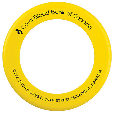 Fling Ring flying disc, 9 1/2" diameter. Don't let all the boring sales talk go right over your head. Keep your feet on the ground without dragging down your sales with this flying ring. Complies with CPSIA, Prop 65. 9 1/2" Diameter