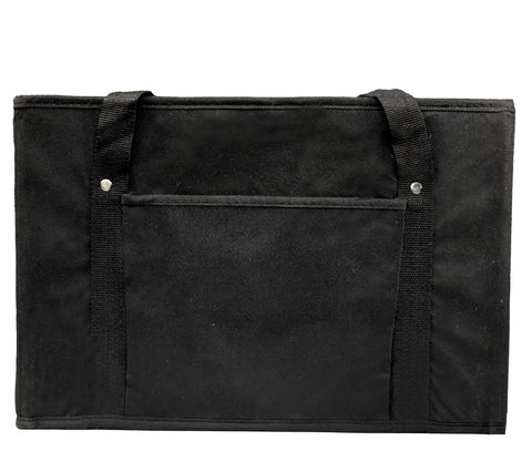 Made from 80 GSM non-woven polypropylene with recycled board. Rigid walls ensure nothing falls out. Features 26" webbing carry straps. Wrap-around handles and rivet construction ensure durability. Side carry handles offer a second carrying option. Rivet construction ensures durability. Perfect for shopping, home & garden, toy box craft box, trunk organized and many other uses. Flat measurements: 15"x11"x1". 15" W x 11" H x 10.5" D