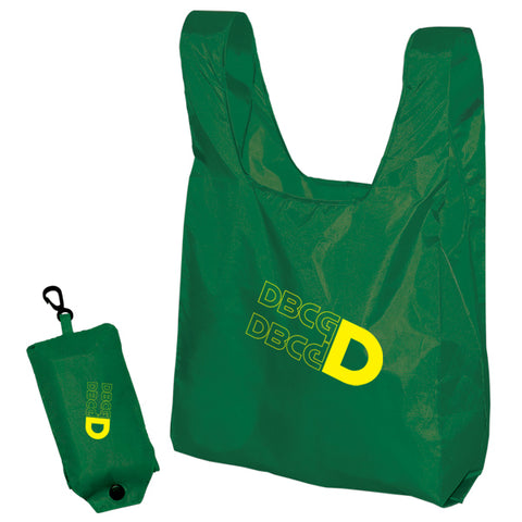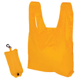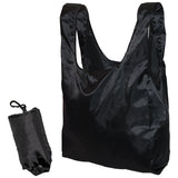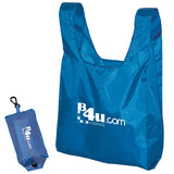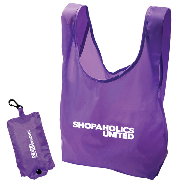 Lightweight 190T polyester tote bag folds into a separate pouch that has a snap closure & plastic clip to attach to bag or purse. Stylish, lightweight, reusable, and very practical. Great trade show giveaway. Bags shipped open (not folded). Complies with Prop 65. 15.5" W x 16" H x 5" D