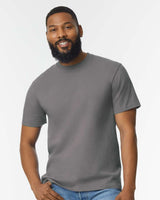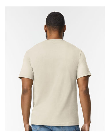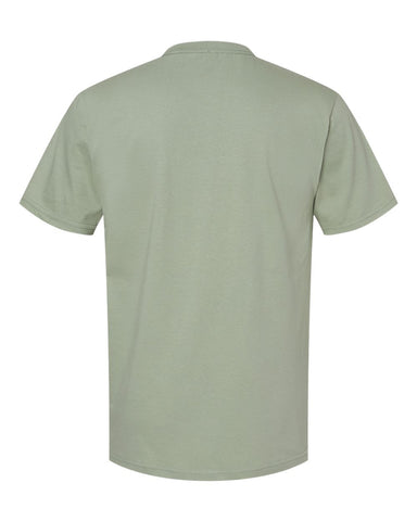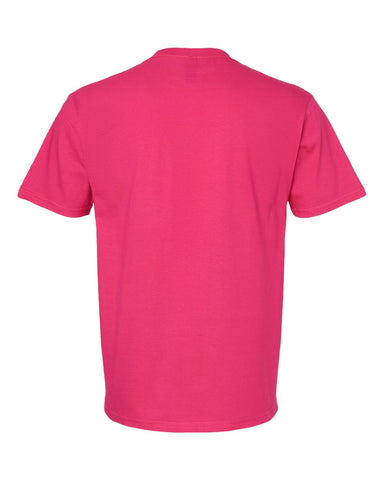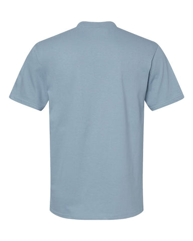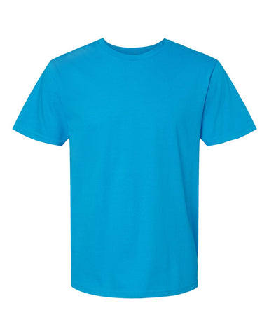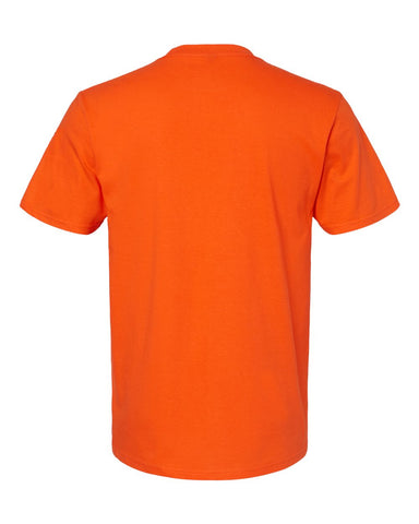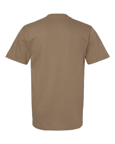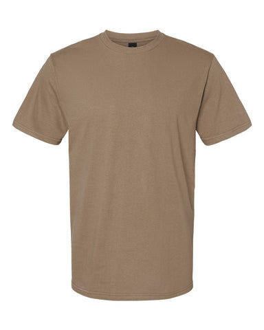 This modern, classic fit tee is made of 100% ring spun cotton. The Sport Gray color option is 90% cotton, 10% polyester and the Graphite Heather color is 50% cotton, 50% polyester.
