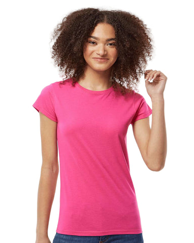 Pre-shrunk 100% cotton looks and feels great alone or in layered outfits. Made of 4.5 Oz., pre-shrunk 100% cotton, 30 singles. Features 1/2" rib-knit collar, seamless double needle stitched collar, hemmed sleeve cuffs, side seams, double-needle stitched sleeves and bottom hem, and quarter-turned. Not all colors are available in all sizes. Antique color & Sport Grey is 90/10 cotton/polyester. Heather colors is 35/65 cotton/polyester. Complies with Prop 65.