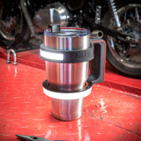 A light, a handle and a lantern for your tumbler. The GLOW Light Tumbler Handle not only makes your 30 oz. or 20 oz. tumbler easier to hold and carry, but also gives you the power of light without moving a finger. No more slipping, dripping or tripping in the dark while trying to balance your tumbler when your hands are full. The GLOW fits most standard vehicle cup holders and perfectly holds your tumbler secure with the rubberized grip ring. . Complies with Prop 65. 4.6" H