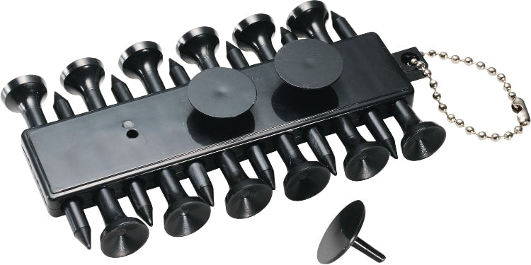The Golf Buddy comes with 12 golf ball tees and three golf ball markers on a beaded plastic chain. It has a compact design that makes it easy to toss in your bag, providing the perfect addition to your next day on the green. Beginners and experienced golfers alike are sure to appreciate this useful accessory. 3.88" D x 2.25" W x 0.5" H