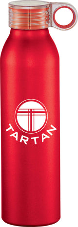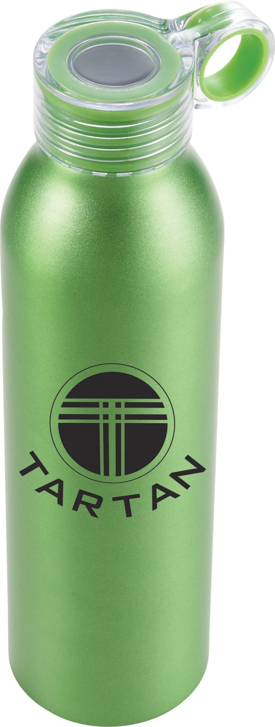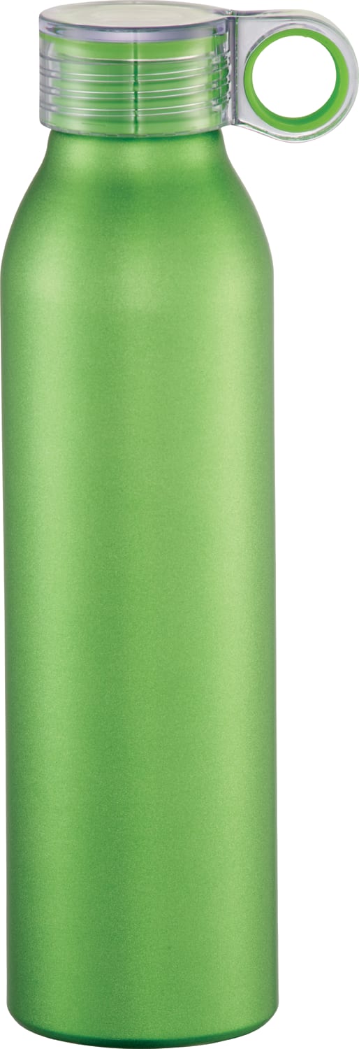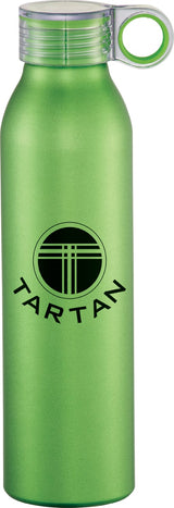 The Bullet Grom Aluminum Sports Bottle 22oz features lightweight single-wall construction that makes it easy to carry whenever you're on the go. The exterior has a trendy matte finish with a unique metallic look, and features an additional pop of color on the built-in hook. This 22oz sports bottle is hand-wash only, fits most standard cup holders, and comes with a clear screw-on lid that prevents spills. 2.85" D x 2.85" W x 8.7" H