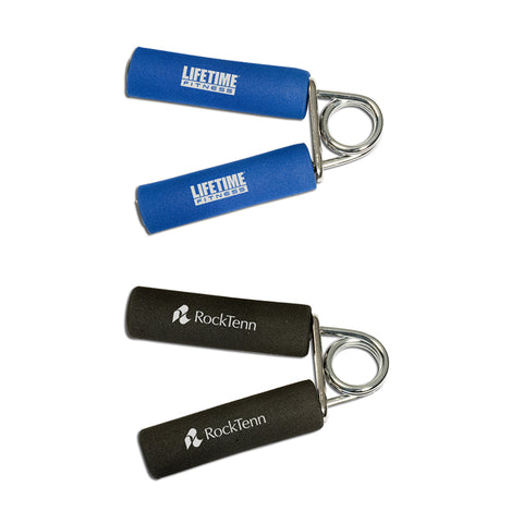 Resistive metal exerciser with soft EVA grips helps strengthen hand muscles. Grip tension rating of 33 lbs. Note: Repeated usage may cause imprint to fade. Recommended imprint color: Silver or Black on bright colors. Complies with Prop 65. 3.5" W x 5" H x 1" Diameter
