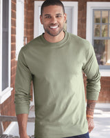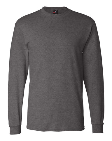 Long sleeves with rib-knit cuffs makes this superior t-shirt a favorite for year around style and comfort. Made of 6.1 Oz., pre-shrunk 100% ring spun cotton. Features ribbed cuffs, double-needle stitched sleeves, shoulder to shoulder taping with coverstitched collar, and tag-free neck label and lay-flat collar. Ash is 99/1 cotton/polyester. Light Steel is 90/10 cotton/polyester. Charcoal Heather is 60/40 cotton/polyester. Complies with Prop 65.