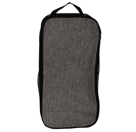 Classic heather travel shoe bag. Top webbing handle and 3 sided zip closure. Mesh sides for ventilation. Top webbing carry handle. 7.5" W x 15" H x 3.75" D