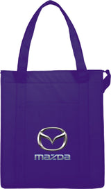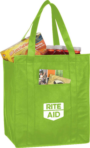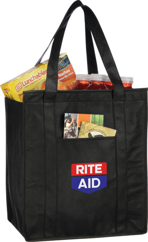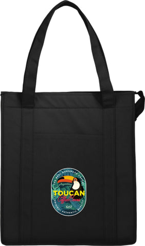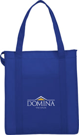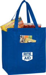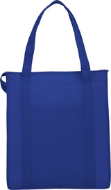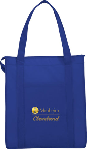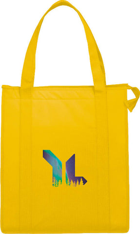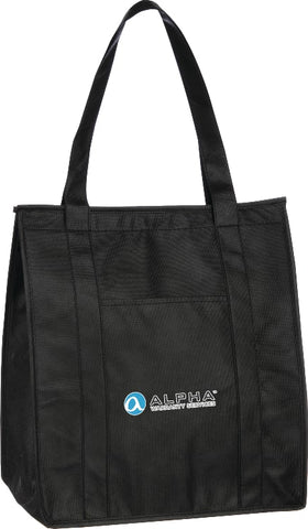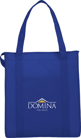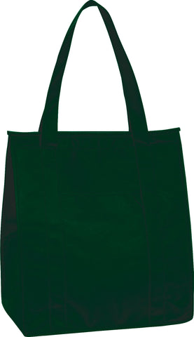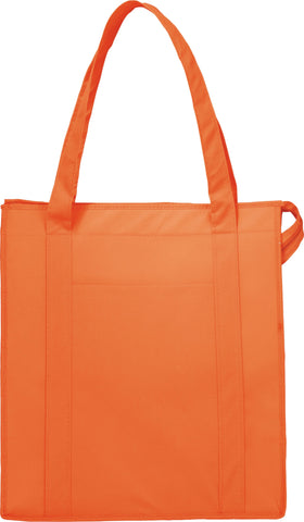 The Hercules Insulated Grocery Tote is as strong as its name suggests and offers a reusable alternative to plastic bags. Its interior is fully insulated with a heat-sealed, water-resistant lining to help protect your groceries and personal items. The Hercules features a zippered main compartment, a front open pocket measuring 9.7" H x 6.5" W, and double handles measuring 23".Material: 80G non-woven polypropyleneRugged, durable designInsulated with a heat-sealed, water-resistant liningLarge. 9" D x 13" W x 15" H