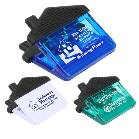 House & Home Power Clip is a house shaped magnetic memo holder. Complies with Prop 65. 2.875" L x 1.375" W x 2.5" H