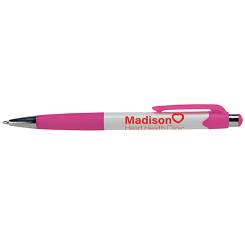 A simplistic style is brought to you by the Mardi Gras® Jubilee. Crisp white barrels with vibrant coloured trim & silver accents. You will have a guaranteed ultra-smooth writing experience with this amazing pen from Hub Pen! Complies with Prop 65.