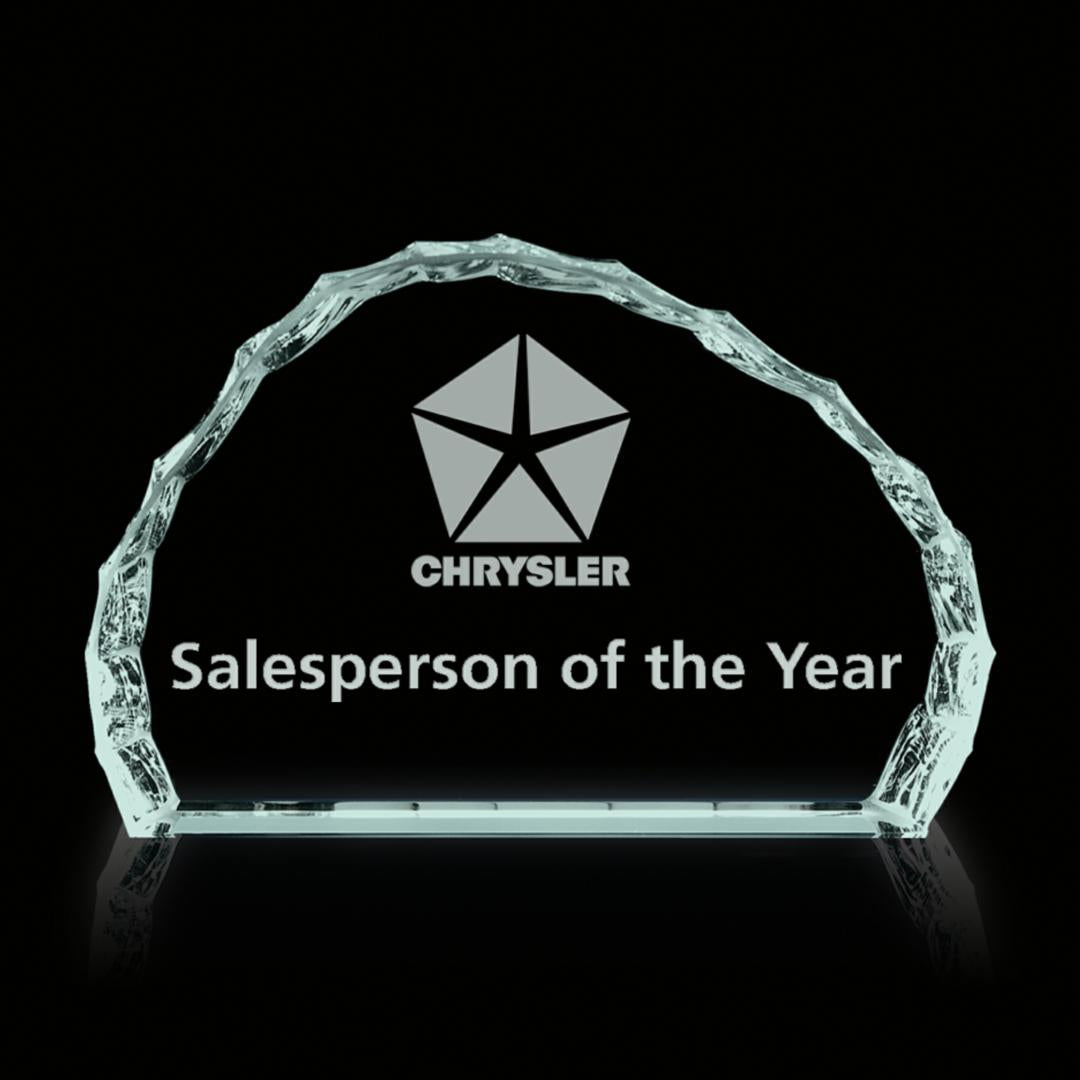 The freestanding 5½” wide, ¾” jade glass Iceberg Mountain features hand chipped and polished edges. The sides are asymmetrically shaped, but consistent from piece to piece. Also available in starfire glass.