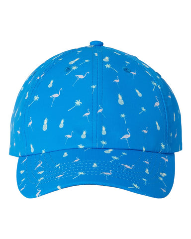 This cap is crafted from 100% recycled polyester sublimation-printed fabric, combining eco-friendliness with style. Its unstructured six-panel, low-profile design provides a relaxed fit, complemented by a pre-curved visor and grey undervisor. The moisture-management and antimicrobial sweatband ensures comfort, while UPF 50+ protection keeps you shielded from the sun. The Imperial woven label and D-Ring micro hook-and-loop closure offer an adjustable and secure fit. 7 3/8" Diameter