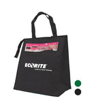 Outer shell made from 80GSM non-woven polypropylene with 40% recycled content. Reflective insulated lining keeps contents hot or cold. Full width outside pocket supports your logo. 18" carry handles are cross-stitched for durability. Full zipper top closure. Ideal for carrying HOT, COLD and frozen food items. 11.5" W x 14" H x 8.5" D