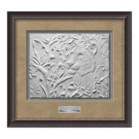 Includes 'Into the Wild' Cast Paper image in our museum quality deep mahogany Caliph molding with antique gold inner trim. Finished with our premium triple acid-free mattes and laser engraved personalization plate.